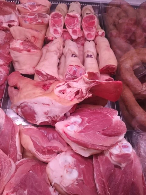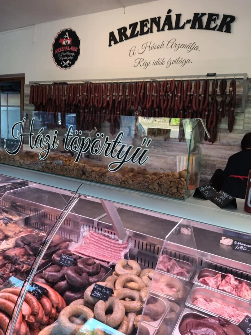 Friss húsokkal, háztáji baromfival, Magyar húsokkal, házi hagyományos füstölésű árukkal,